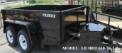 STANDARD FEATURES: A-FRAME TONGUE W/2K JACK *HD MODELS 5K JACK * 2 5/16" COUPLER * 7 WAY RV STYLE PLUG * LOCKABLE ENCLOSED PUMP & BATTERY BOX * EZ LUBE HUB AXLES W/BRAKES *CHARGE WIRE W/CIRCUIT BREAKER* BREAK AWAY SWITCH * D.O.T. APPROVED LIGHTING * HYDRAULIC POWER UNIT W/20' REMOTE * 5/16"X30" SAFTEY CHAINS * 20" HIGH SIDES * 2 WAY GATE 7K TO 14K DIAMOND PLATE FENDERS * 5K SMOOTH JEEP STYLE FENDER * ONE PRIME COAT & TWO COATS OF PAINT *COLOR BLACK * 15" TIRE & WHEELS W/ WHITE SPOKE WHEELS 5K TO 10K * 16" RADIALS W/WHITE SPOKE WHEELS 12K TO 14K ** HD TRAILERS * 4 D-RINGS * LED RUBBER MOUNTED LIGHTS * 5' RAMPS STORED UNDER BED * COMBINATIONS REAR GATE* DOUBLE EYE SPRINGS/SHACKLES SUSPENISON 12K * SLIPPER SPRING SUSPENSION 14K