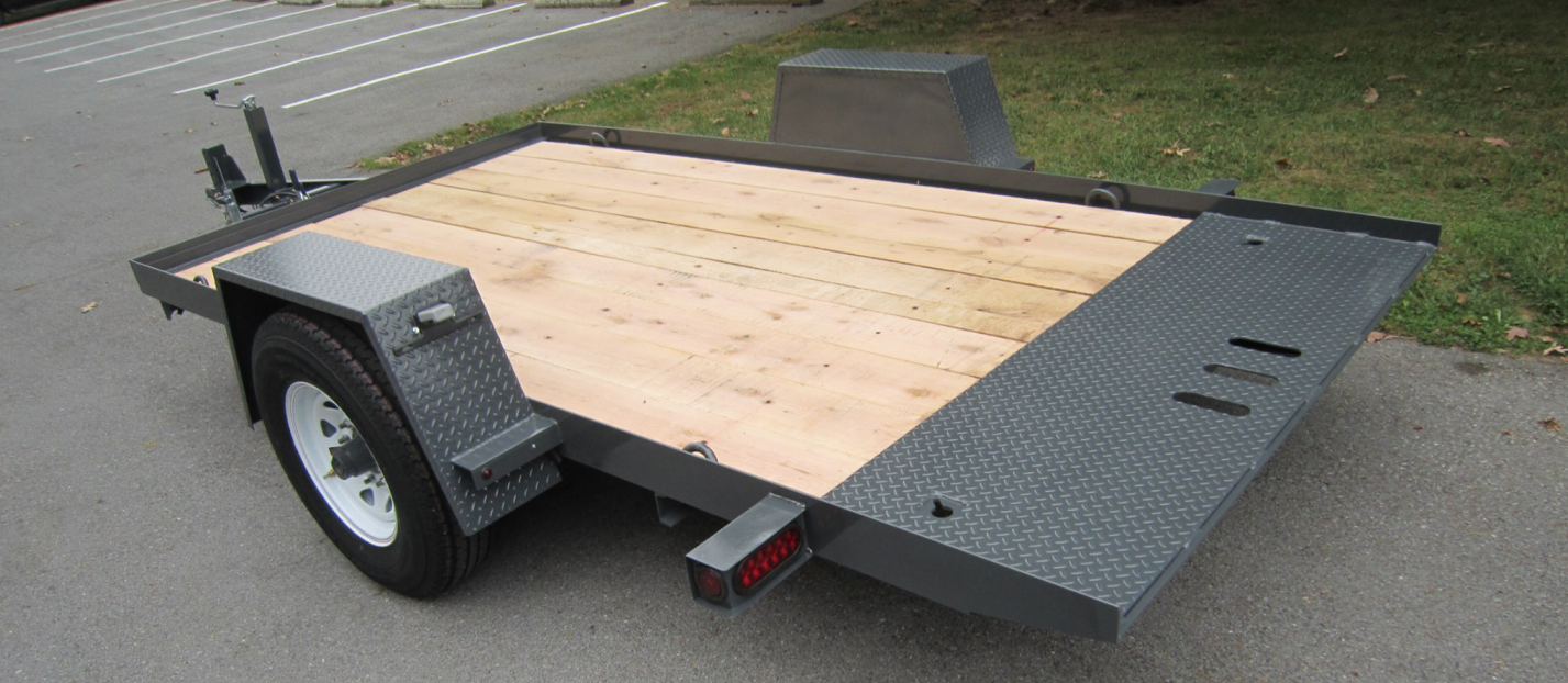 STANDARD FEATURES: A FRAME TONGUE * 4” DROP AXLE * ELECTRIC BRAKES * ADJUSTA-BLE COUPLER OR PINTLE RING * ADJUSTABLE CUSHION CYLINDER * DIAMOND PLATE FEND-ERS * 7K DROPLEG JACK * {4} 5/16” D-RINGS * {2} BANJO EYES*BREAK-AWAY KIT W/CHARGER * SEALED WIRING HARNESS * 7-WAY RV STYLE PLUG * SAFETY CHAINS W/CLEVIS * L.E.D. LIGHTS RUBBER MOUNTED * VALSPAR PRIMER & PAINT * COLOR BLACK * TOGGLE LOCK LATCH CLAMP * PRESSURE TREATED FLOOR * COMPLETE 2 YEAR WARRANTY